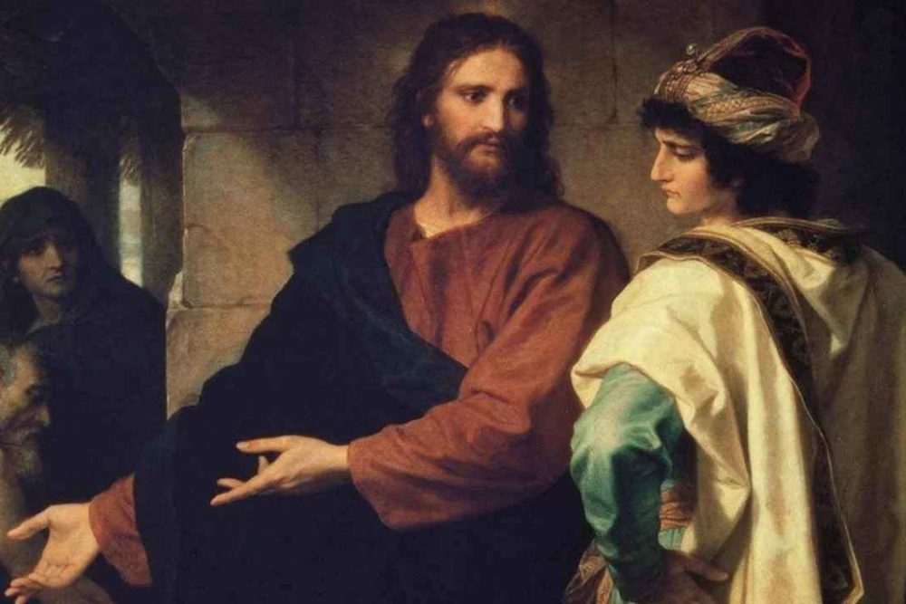 El Señor en el evangelio llama a muchos a seguirle. Algunos responden de inmediato que sí, lo dejan todo. Otros, como el joven rico, no se deciden a dar ese paso, a pesar de una invitación del Maestro, y se marchan tristes. Heinrich Hofmann plasma la escena: un muchacho capta que el Señor le llama, ve a la derecha del maestro a un enfermo sostenido por una de sus seguidoras. Y el joven no se decide a dar el paso adelante para servir. Esto nos introduce en el primer tema.